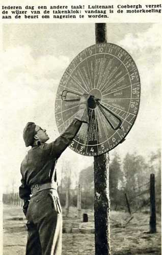 It was Lieut-Col. C.E. Bowden who came up with the idea of a task system for the military vehicles. Each driver / rider had to follow the tasks on this wheel: