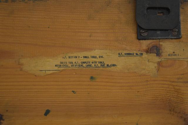 Hi I have this wooden chest. There are some remnants of the paper that was glued on the lid. It says: " Chests tool MT complete with tools MOTOR CYCLE.